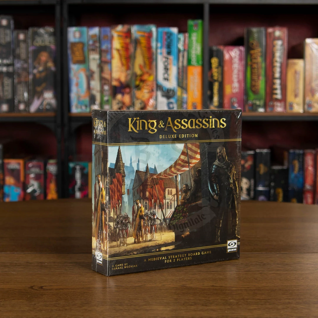 King & Assassins is an asymmetrical fantasy game of strategy and deception for two players. One player controls the vile king and his brutal lackeys. The other player controls the mob itself and more importantly three assassins who hide among the crowd hoping to kill or stop the ruler. Choose your strategy, hide the assassins and play one of two different scenarios, each offering almost limitless choices.