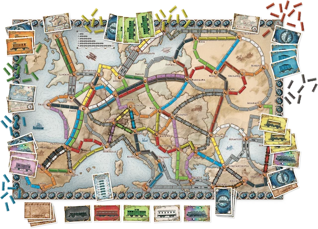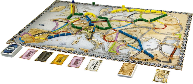 Award-winning for a reason, Ticket to Ride and its expansions take players around the world collecting train cards and building train routes from city to city. Expansions add new game mechanics and introduce players to different countries and continents but the base remains the same, collect cards, complete routes and win with the most points. Russia to Spain, Ireland to Turkey, Ticket to Ride: Europe gives players the opportunity to traverse Old World Europe. This version contains larger illustrated cards, new game mechanics like stations, ferries and tunnels, 225 colored train cars, 158 illustrated cards, scoring markers and a rules booklet.