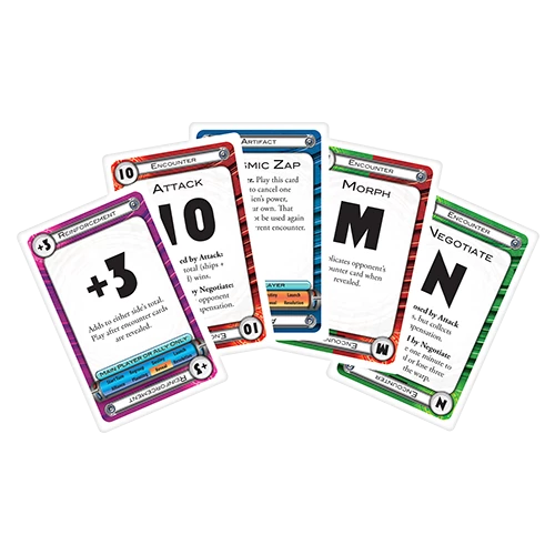 Who—or what—is out there? Colonize the galaxy in Cosmic Encounter! This game of interstellar exploration, negotiation, and conflict invites three to five players to lead their own unique alien civilizations as they seek to spread across the stars. But every planet is ruled by someone, and the only way to expand your cosmic colonies is through either diplomacy or war. By establishing colonies on five planets beyond the reaches of your home system, you will safeguard the future of your species and earn victory. But if you fail, you will fall into the black abyss of space! Every game of Cosmic Encounter is different, and the tables can turn in an instant. Forge your alliances, outwit your enemies, and spread your colonies across the galaxy!