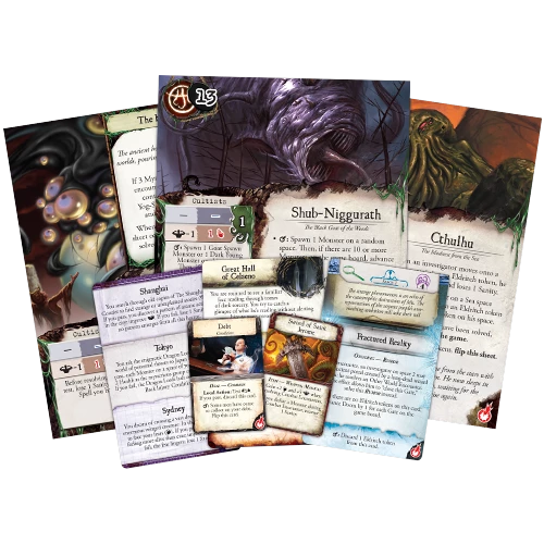 Across the globe, ancient evil is stirring. Now, you and your trusted circle of colleagues must travel around the world, working against all odds to hold back the approaching horror. Foul monsters, brutal encounters, and obscure mysteries will take you to your limit and beyond. All the while, you and your fellow investigators must unravel the otherworldly mysteries scattered around the globe in order to push back the gathering mayhem that threatens to overwhelm humanity. The end draws near! Do you have the courage to prevent global destruction? Eldritch Horror is a cooperative game of terror and adventure in which one to eight players take the roles of globetrotting investigators working to solve mysteries, gather clues, and protect the world from an Ancient One – an elder being intent on destroying our world. Each Ancient One comes with its own unique decks of Mystery and Research cards, which draw you deeper into the lore surrounding each loathsome creature. Discover the true name of Azathoth or battle Cthulhu on the high seas. With twelve unique investigators, two hundred-fifty tokens, and over three hundred cards, Eldritch Horror presents an epic, world-spanning adventure with each and every game.