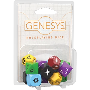 Genesys is a roleplaying game that utilizes the critically-acclaimed Narrative Dice System while a ruleset that can be used in a wide variety of settings. Take to the skies in a Victorian airship, slay an ancient dragon, or pilot your very own starship. All this and more is possible with the Genesys system, which uses the specialized dice found in this pack to propel adventures. The Genesys Roleplaying Dice Pack features three Ability dice, three Difficulty dice, two Setback dice, two Boost dice, two Proficiency dice and two Challenge dice, giving you everything you need to run your own game of Genesys. These specialized dice provide dynamic results to every skill check, allowing players to succeed in their task while experiencing a massive setback, or finding some advantage in a massive failure. Not only that, but the dice are easy to interpret, keeping the flow of the game steady and smooth as players and game masters check skill test results with ease.