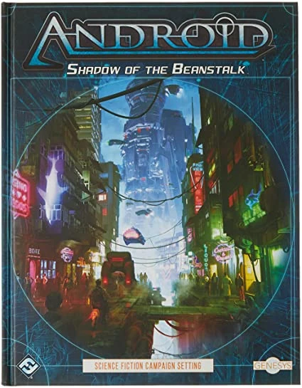 In the not so-distant future, humanity has spread out across the solar system, unlocked the frontiers of cyberspace, and created millions of intelligent androids in its own image. At the heart of this progress stands a ladder leading to the riches of the stars—the massive space elevator called the Beanstalk. And at its base sprawls the biggest, meanest, and most exciting city on Earth: New Angeles. Fantasy Flight Games is proud to present Shadow of the Beanstalk, an Android Sourcebook for the Genesys Roleplaying System! Take on the role of cops, con artists, roughnecks, and escaped androids trapped between greedy corporations, corrupt officials, and vicious street gangs. Outwit your foes, uncover their conspiracies, flee their retribution, and maybe you’ll survive. Who knows? Maybe you’ll even get rich… Shadow of the Beanstalk is a 256-page sourcebook for use with the Genesys Roleplaying System. In this book, you’ll find new rules for character creation, new weapons, equipment, and adversaries, new rules for running the net, information on the Android Universe, and advice for gamemasters running a campaign in the cyberpunk future of Android. All of this accompanied by beautiful art and elegant mechanics that can be used in any setting for the Genesys roleplaying system.