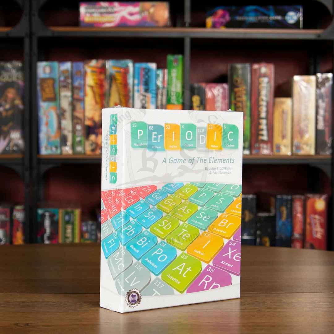 Periodic: A Game of The Elements is a strategy board game designed around the structure and function of the periodic table of elements, as well as some of the most fundamental principles in chemistry! In Periodic, you activate periodic trends to strategically maneuver across the periodic table, discovering elements in order to score points gain Awards. You must also couple discovering elements with ending your turns in specific families of elements. This allows you to move up the Academic Achievement Track in a race against other players for the limited spots, and additional points, at the end of the track.