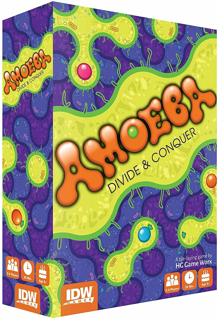 You`ll need to divide in order to conquer in Amoeba, the tile-laying game that requires you to think strategically and act microscopically. 2 to 4 players draw and place tiles in order to build the biggest amoebas. But be careful: your opponents can place tiles on top of your completed amoebas to split them up and hurt your score. After all tiles are played, the player with the biggest amoebas wins! 2 to 4 players, ages 8 and up. Game Time: 30 minutes.