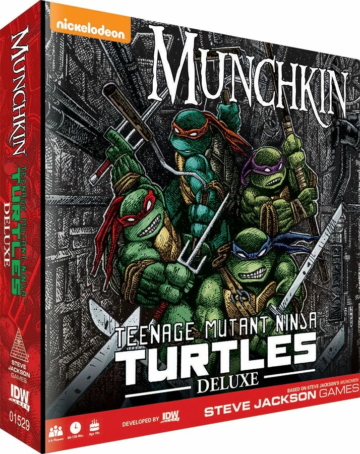 Using the much beloved and extremely popular Munchkin game rules by Steve Jackson Games, Munchkin Teenage Mutant Ninja Turtles blends the humor and gameplay of Munchkin with the enemies and teamup themes of the iconic Teenage Mutant Ninja Turtles comics. In Munchkin TMNT the Turtles and their pals are in a race to the Level 10 Pizza Parlor as the first one there eats for free! Its all good dudes, except Shredder and the Foot Clan are out to spoil the pizza party.