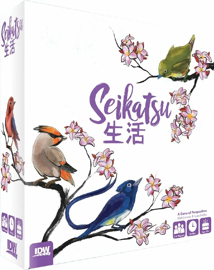 In the competitive, strategic, tile-laying game Seikatsu – meaning `life` in Japanese – players tend a shared garden between each of their pagodas, competing to create the most breathtaking view. In a battle of serenity, tensions will be high! Take turns drawing and playing Garden tiles that feature both a bird and a flower to create flocks of birds and rows of flowers. Who has the best view of the garden? It`s all a matter of perspective in Seikatsu!