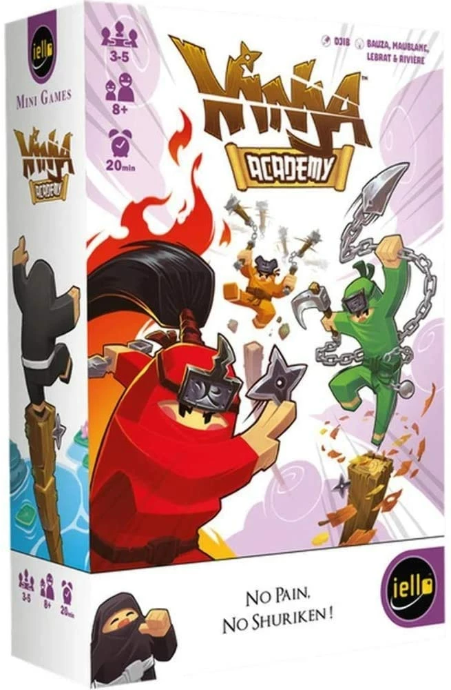 As an apprentice Ninja, it`s time for you to show all your skills in challenging and exciting tricky trials. Will you be quicker, stronger, smarter…. or simply more concentrated than your opponents? Your training alternates collective trials and duels, in a series of varied tests drawn randomly. But whether you are challenging the whole group or head-to-head with another ninja, there will be only one rule: be the best at your trial! Ninja Academy is a hilarious, fast-paced and highly replayable new dexterity game!