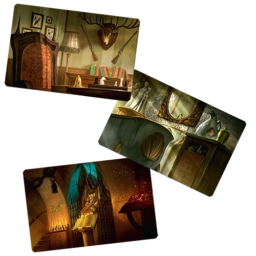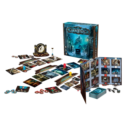 A horrible crime was committed on the grounds of Warwick Manor thirty years ago. Now, the mansion is haunted by the ghost of the murdered servant, and it’s up you, a group of psychic investigators, to get to the bottom of the mystery! Mysterium is a cooperative game of deduction and teamwork for two to seven players. Over the course of the game, one player takes on the role of the ghost and, over the course of a few scant hours, tries to lead the psychics to the correct culprit. Every member of the team will receive numerous visions, but what is the ghost trying to tell you exactly? Can the psychics determine the weapon, location, and killer, or will the criminal pull off the perfect crime?
