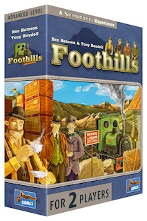 Northern Wales – rugged hills, beautiful landscapes, a few sheep… and narrow gauge railways with steam engines, crawling through the valleys to their destinations. Welcome to Foothills, where, in the shadows of Mt. Snowdon, several small Railway companies wait for 2 players to develop their routes. With this game, Tony Boydell and co-designer Ben Bateson add a new member to the Snowdonia game series. A tricky action selection mechanism adds new challenges for railway developers and requires planning ahead. With different setups, no two games will be the same!