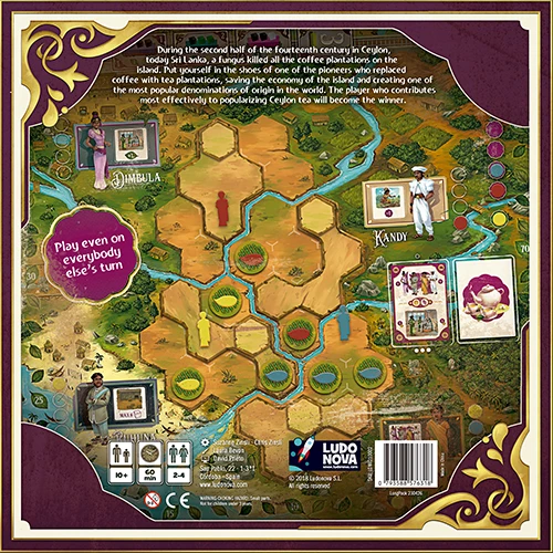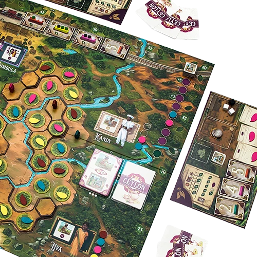 “The tea fields of Ceylon are as true a monument to courage as is the lion at Waterloo.” – Sir Arthur Conan Doyle In Ceylon, players take on the role of the pioneers who developed the Ceylon tea industry after a deadly fungus killed off all the coffee plantations on the island. You must build plantations, harvest crops, develop technology, and export products throughout the world. The player who contributes most effectively to developing the success of Ceylon tea will become the winner