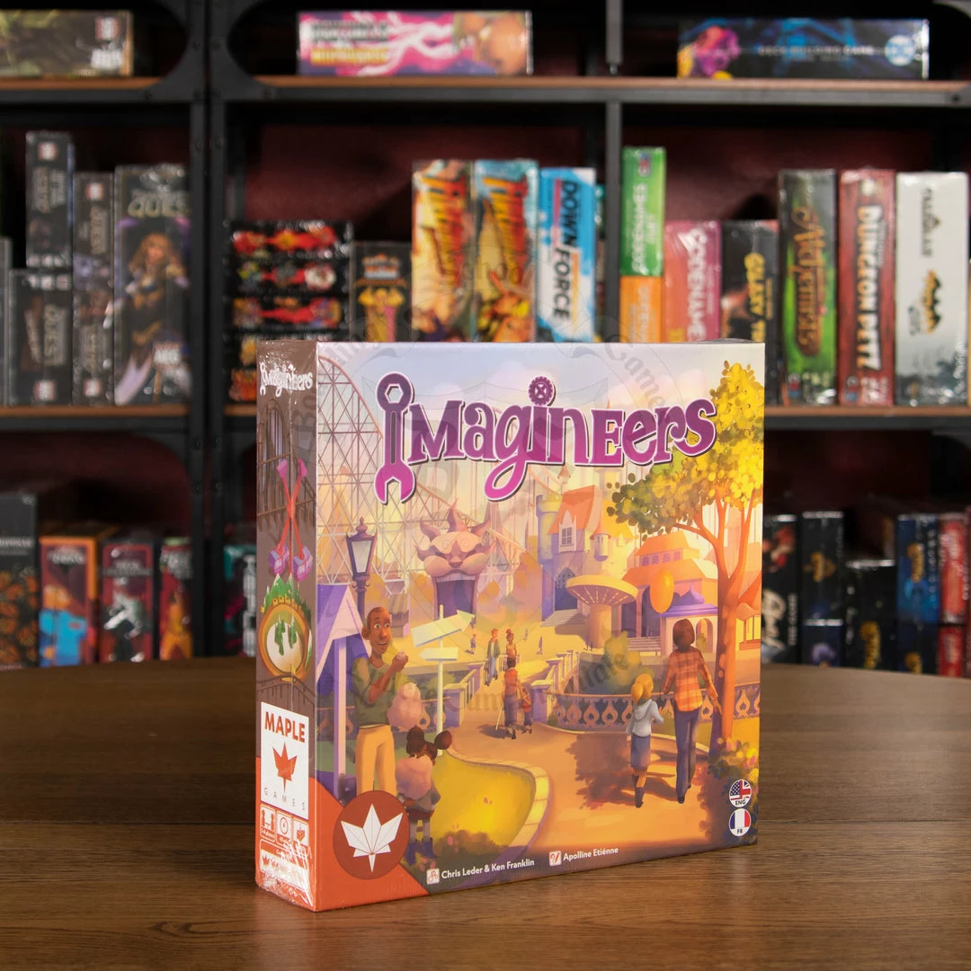 A board game about engineering amusement rides and roller coasters. The most Legendary Imagineer wins. Featuring amazing art, easy to learn rules, and a fun inclusive theme, Imagineers is a gateway game anyone would be proud to own. The game is perfect for playing with your family, friends, or weekly board game group. Imagineers features: tile placement, resource management, and an innovative twist on mancala (one of the most ancient games). All player build up an amazing theme park together, while each player is also trying to make the most thrilling rollercoaster ever!