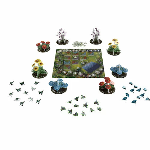 A butterfly garden requires vision and a caring hand. Spring has arrived, and the world is in bloom. As your garden grows, caterpillars will congregate and morph into beautiful butterflies eager for nectar. Papillon is a tile-drafting, tableau-building, and area majority game for 2-4 players. Over 8 rounds, players will bid for flower tiles to build their garden, attract butterflies to flowers with valuable nectar, and of course, every garden looks better with a gnome. The player that collects the most nectar at the end of the game wins!