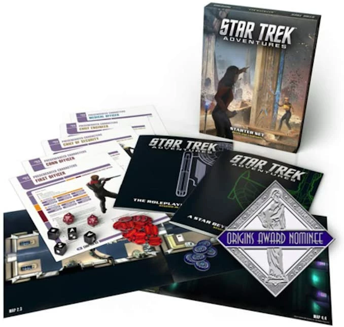 A starter set with everything you need for roleplaying in the Star Trek Galaxy! Star Trek Adventures takes you to the final frontier of the Galaxy, where new discoveries await keen explorers. Your duties may take you to the edges of known space, or to Federation colonies in need, to the borders of neighboring galactic powers, or into the eye of interstellar phenomena. Your ship and your crew epitomize the best Starfleet and the United Federation of Planets has to offer, and you are needed more than ever. The perfect Christmas gift for a fan of Star Trek and role play gaming! This starter set contains everything you need to begin your journey to the final frontier, including an incredible campaign of three linked missions that test the mettle of a brave crew of five player characters.