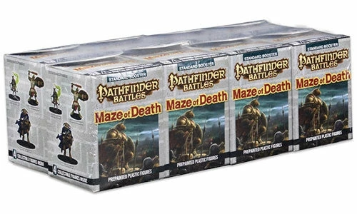 From lowly Ratfolk, Ghuls, and Viper Vines, to fearsome Minotaurs and rare `dungeon dressing` inserts, Maze of Death unleashes 52 figures for the Pathfinder Battles line of miniatures. Offered in 8-count bricks, Pathfinder Battles: Maze of Death Standard Boosters contain one (1) Large figure and three (3) Medium or Small figures.