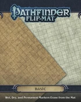 A dungeon filled with insidious traps, a magnificent imperial throne room, the citadel of an immortal tyrantthe possibilities for adventure are endless with Pathfinder Flip-Mat: Basic. Appropriate for use with any roleplaying game, this invaluable gaming accessory presents two subtle texturessmooth stone and fine dirtproviding Game Masters a blank canvas on which to create any dungeon, battleground, and adventure set piece they desire. A special coating on each Flip-Mat allows you to use wet erase, dry erase, AND permanent markers with ease! Removing permanent ink is easysimply trace over any permanent mark with a dry erase marker, wait 10 seconds, then wipe off both marks with a dry cloth or paper towel.