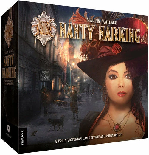 Nanty Narking is a Victorian board game of wit and podsnappery by British game designer Martin Wallace, based on his acclaimed previous design Discworld: Ankh-Morpork. Immersed deeply in the world of Dickens`s and Doyle`s literature, all game locations, events, and characters are now tied to real and fictional characters and places in Victorian London. Each of the 132 cards is unique and feature famous literary and historical characters. In Nanty Narking, you will find simple game rules; deep, immersive gameplay; a strong theme; exclusive and beautiful components