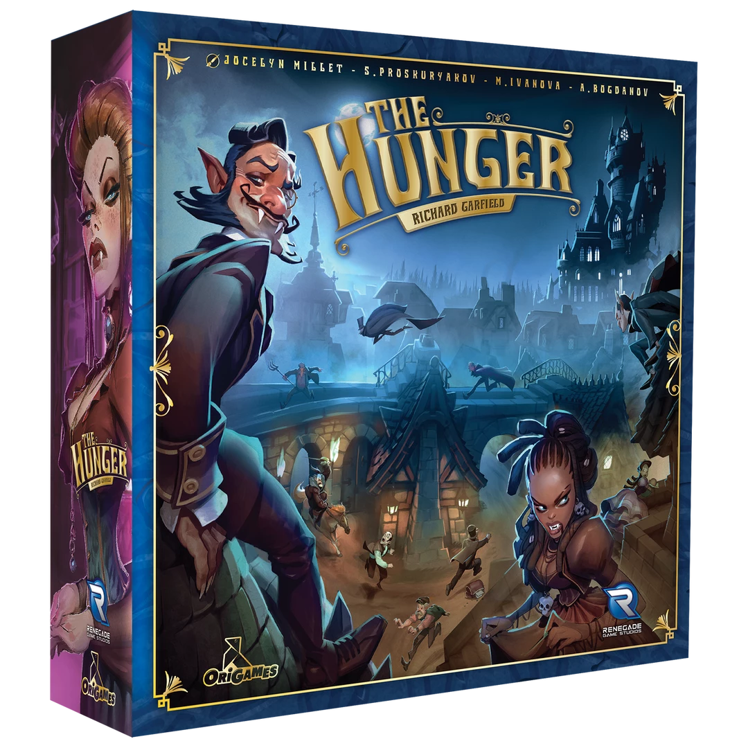 Vampires awake from their torpor as the eternal roses are blooming. You have until sunrise to run to the Labyrinth and pick the most beautiful bloom, hunting for Humans on your way, seducing Familiars to help you, and increasing your Powers to become the most notorious Vampire. The Hunger is a race where each player will have to optimize their card deck, hunt Humans to gain Victory Points, fulfill secret Missions, and eventually acquire a Roseand return to the Castle before sunrise. The more you hunt, the slower both you and your deck become, which will make it harder and harder to get back before daybreak. Can you become the most notorious Vampire without burning to ashes at Sunrise?