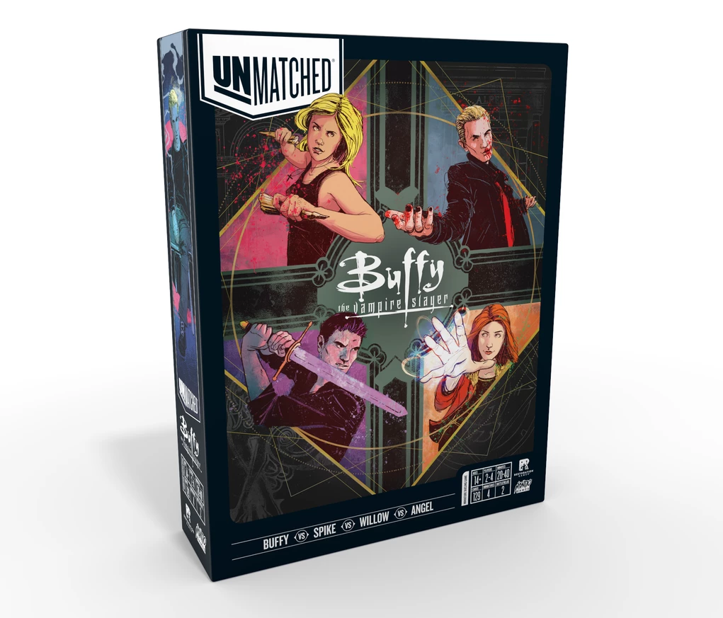 Unmatched: Buffy the Vampire Slayer features four heroes. Buffy will hit you with Mr. Pointy or summon her Slayer`s strength for a cartwheel kick. When it`s time for backup, she`ll take her pick between insightful Giles or reliable Xander. Spike, a relentless hunter, seeks the shadows and calls on Drusilla`s Sight to let him know just where and when to strike. Willow, a peerless witch, dabbles in black magic and risks her darker self, potent but dangerous. At times, only Tara can bring her back from the brink of the abyss. Angel, once the Scourge of Europe, is cursed with a soul, conflicted by his victories and taking solace in his losses. Faith is there to make sure things stay `Five by Five`. Unmatched is a highly asymmetrical miniature fighting game for two or four players. Each hero is represented by a unique deck designed to evoke their style and legend. Tactical movement and no-luck combat resolution create a unique play experience that rewards expertise, but just when you`ve mastered one set, new heroes arrive to provide all new match-ups.