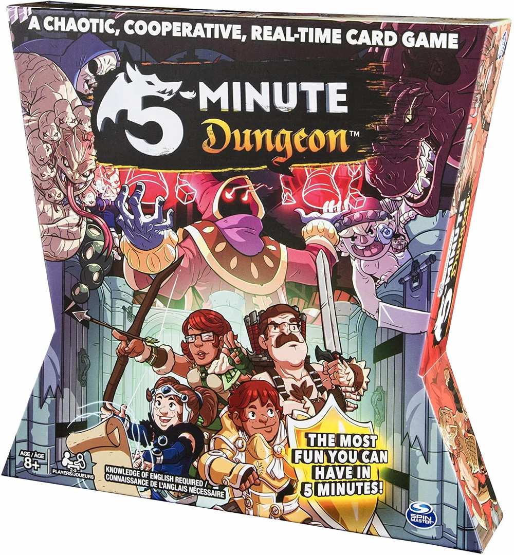 5- Minute Dungeon is a chaotic, cooperative, real-time card game in which players have only five minutes to escape the randomized dungeon. Communication and teamwork are critical to survival because there`s no time to form a carefully considered plan – and no predicting what dangers lie ahead. In more detail, players assume the role of one of ten heroes, each with special cards and abilities. Once the five-minute timer starts, the race is on to defeat all the monsters inside the dungeon.