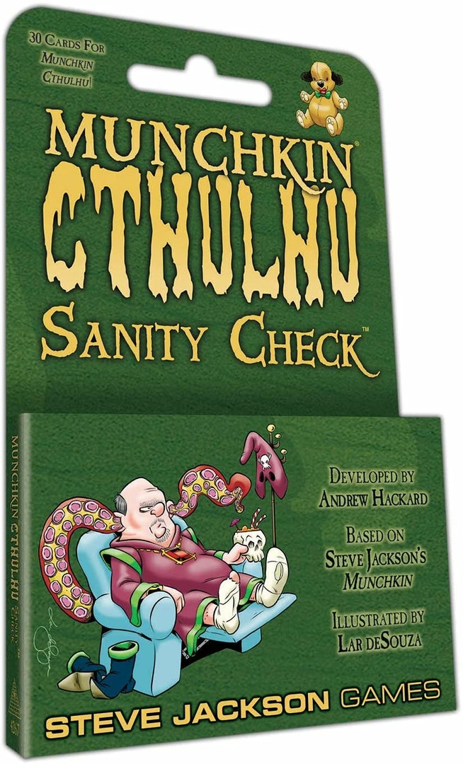 Long-time fans will be excited for the first new Munchkin Cthulhu expansion in several years, and even new fans can mix these 30 cards into their sets for an instant jolt of variety. Sanity Check has all the curses, cultists, mayhem, and madness any Cthulhu fan could ask and mixes right into any Munchkin Cthulhu game.
