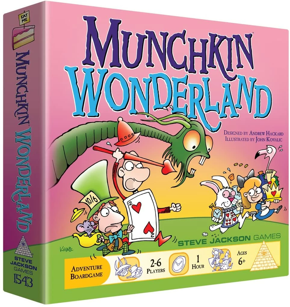 Wander Wonderland! Collect Whimsical Treasure! Fight the Red Queen! Designed for children of all ages and those at heart, Munchkin Wonderland transports players to the iconic world of Lewis Carroll`s Wonderland novels. Move around the illustrated game board, fighting monsters such as the Jabberwock or the Red Queen and collecting their treasures. You can even make new friends like the Caterpillar or Dormouse!