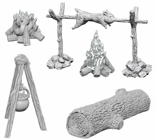 Wizkids: Deep Cuts Unpainted Miniatures – Campfire & Sitting Log