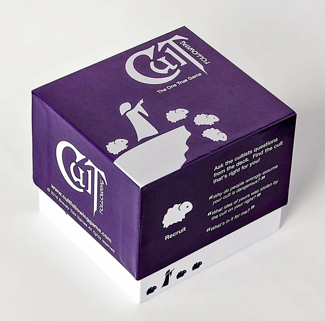 Do other games leave you feeling…empty inside? Cult Following: The One True Game is a storytelling game where you convince your friends that the eternal truths that you just made up should command devotion, while their fanatical ravings are just plain ridiculous. Choose ideas from a hand of cards, bind them together into a ridiculous cult, and pitch it to your friends. Answer pointed questions from potential recruits, defending your own ideas while attacking the lies of the other cultists. Describe how your cult ascends into fame and fortune, while others languish in obscurity! Will your friends heed your warning about timid forest creatures, shapeshifting and unspeakable horrors, or will another cult steal your rightful followers?